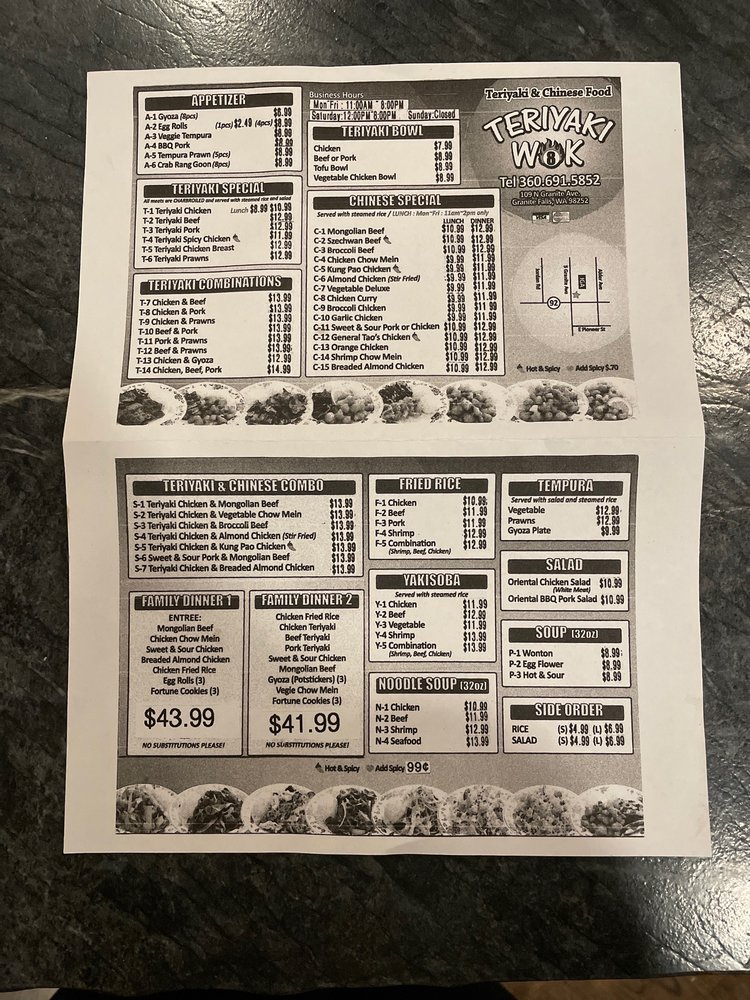 Introducing the vibrant menu at Teriyaki Wok 8, located in Granite Falls, WA, where the flavors of Thai, Chinese, and Japanese cuisine come alive. Renowned for its excellent takeout and delivery options, this cozy eatery caters not only to individuals but also hosts groups and families, offering a welcoming atmosphere with wheelchair accessibility and heated outdoor seating.